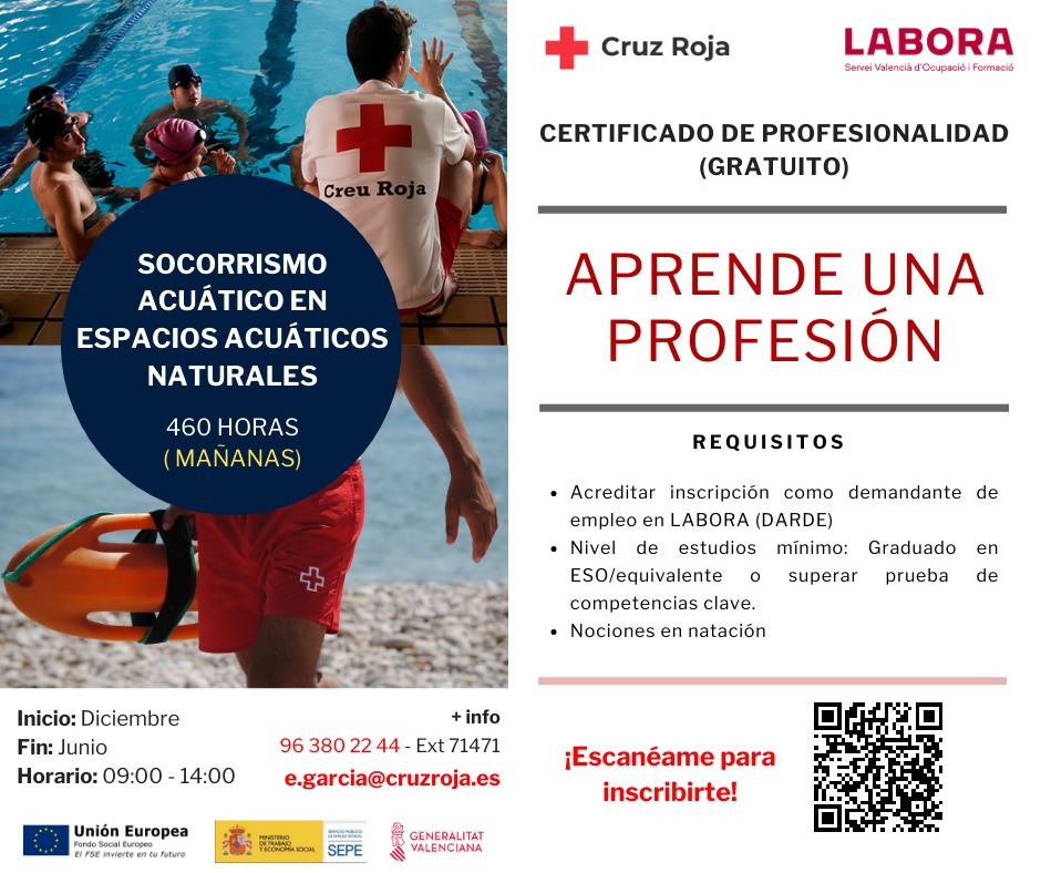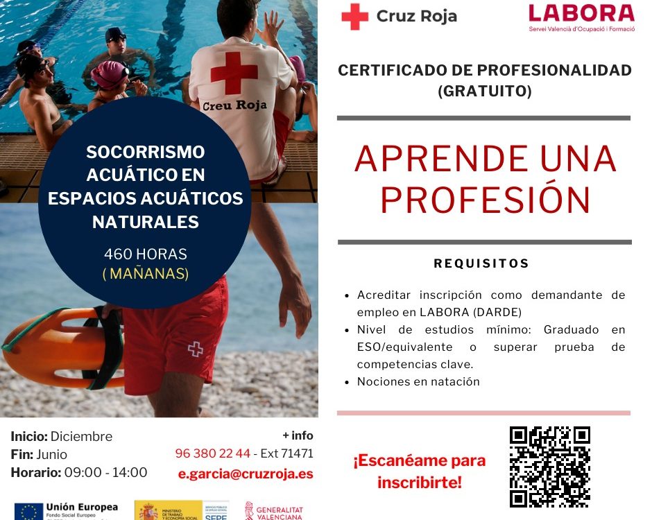 Cruz Roja y Punt Labora, te ofrecen la posibilidad de formarte gratuitamente si te encuentras en paro. Consulta el QR o pincha el enlace para obtener […]